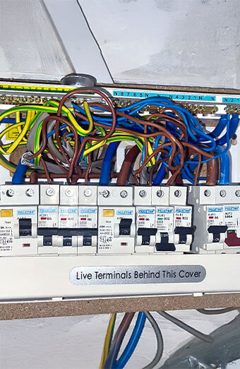 Professional rewiring to eliminate poor connections, remove illegal joins, and improve switchboard layout for better safety and serviceability.